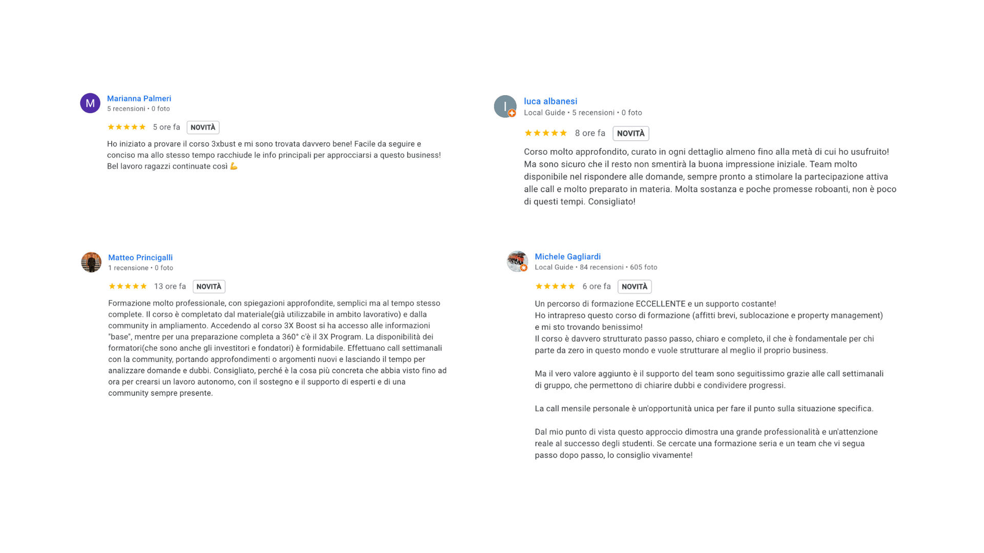 Oggi decine e decine di persone stanno applicando il Metodo 3X per creare una Seconda Entrata Stabile e Scalabile con gli Affitti Brevi.